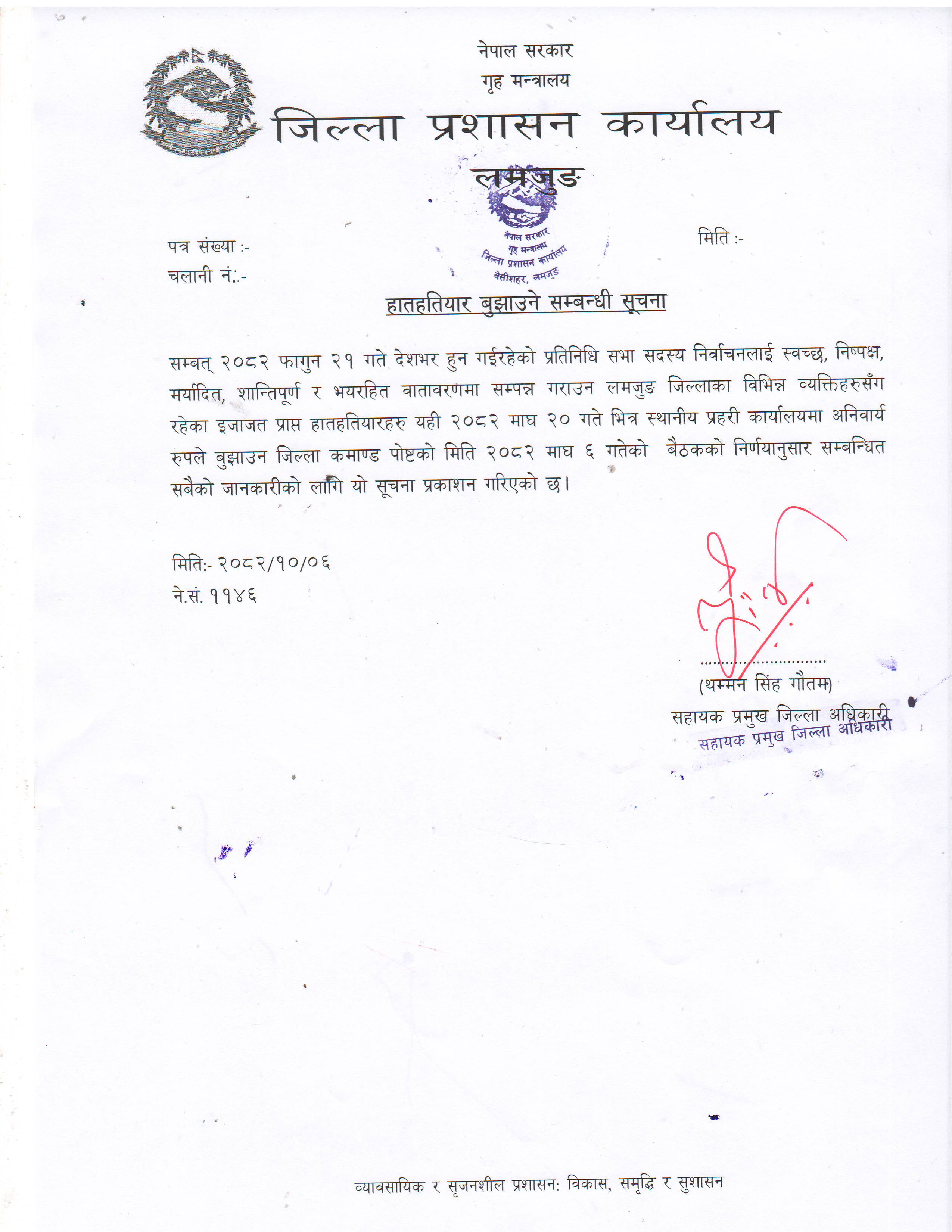 © सर्वाधिकार सुरक्षित जिल्ला प्रशासन कार्यालय, लमजुङ
