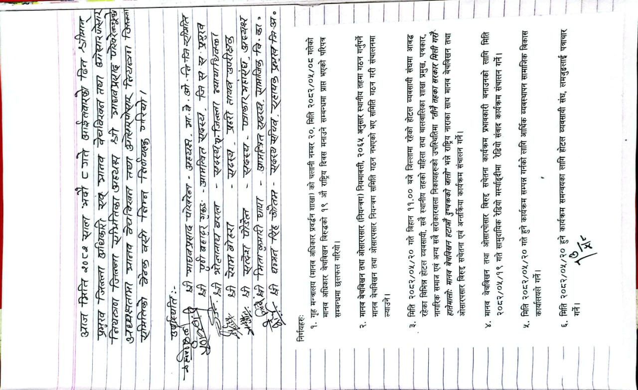 मानव वेचविखन तथा ओसारपोसार नियन्त्रण जिल्ला समितिको निर्णय