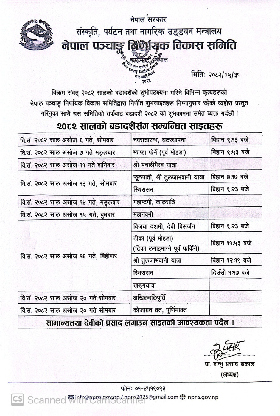 तस्बिर : 2082 सालको बडादशैसँग सम्बन्धित साइतहरु
