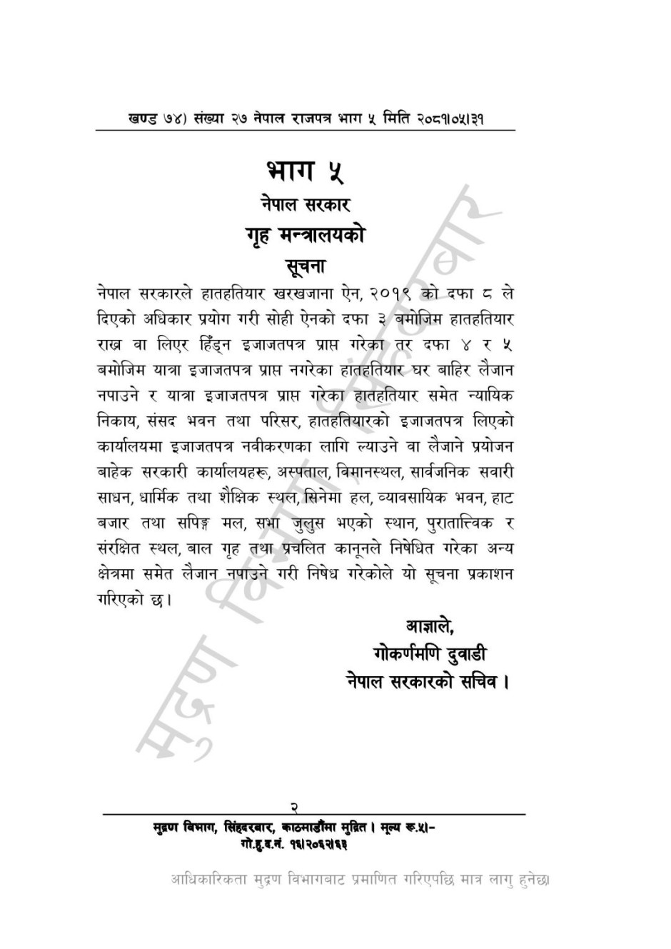 पेट्रोलियम पदार्थ र खाना पकाउने ग्याँसको अनावश्यक भण्डारण नगर्ने/नगराउने सम्बन्धी अत्यन्तै जरूरी सूचना