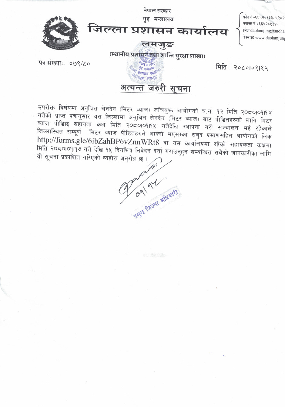 © सर्वाधिकार सुरक्षित जिल्ला प्रशासन कार्यालय, लमजुङ