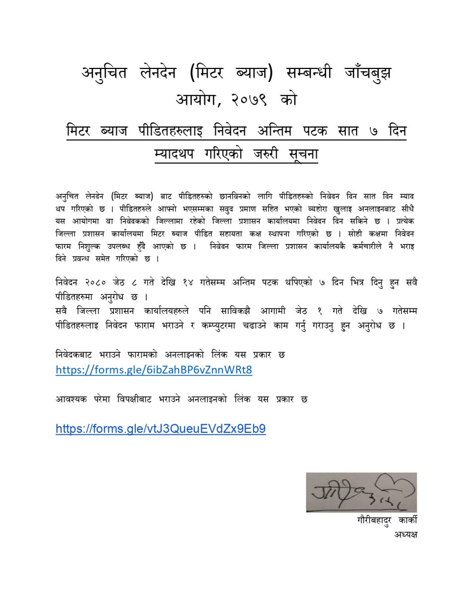 अनुचित लेनदेन सम्बन्धी जाँचवुझ आयोगको अत्यन्त जरुरी सूचना