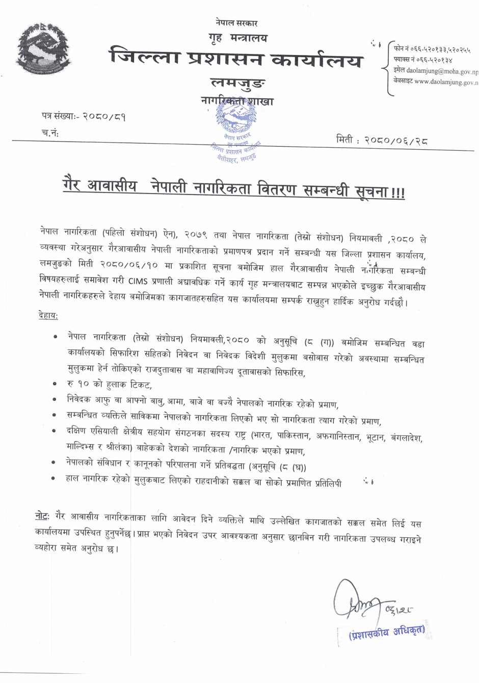 गैर आवासीय नेपाली नागरिकता वितरण सम्बन्धी सूचना