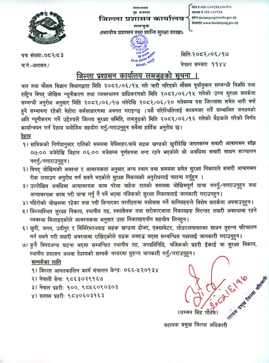 © सर्वाधिकार सुरक्षित जिल्ला प्रशासन कार्यालय, लमजुङ .
