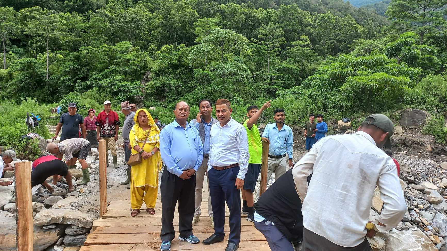 मिति 2080/04/08 गते सोमबारको दिन जिल्ला प्रशासन कार्यालय, लमजुङकाे समन्वय, सुरक्षा निकायहरुको सहयोग र बेसीशहर नगरपालिकाको सक्रियतामा नगरपालिकाको वडा नं.१० स्थित भाचोक खोलामा स्थानीय सामाग्री एवं प्रविधी प्रयोग गरी निर्माण गरिएको पुलको अनुगमन ।