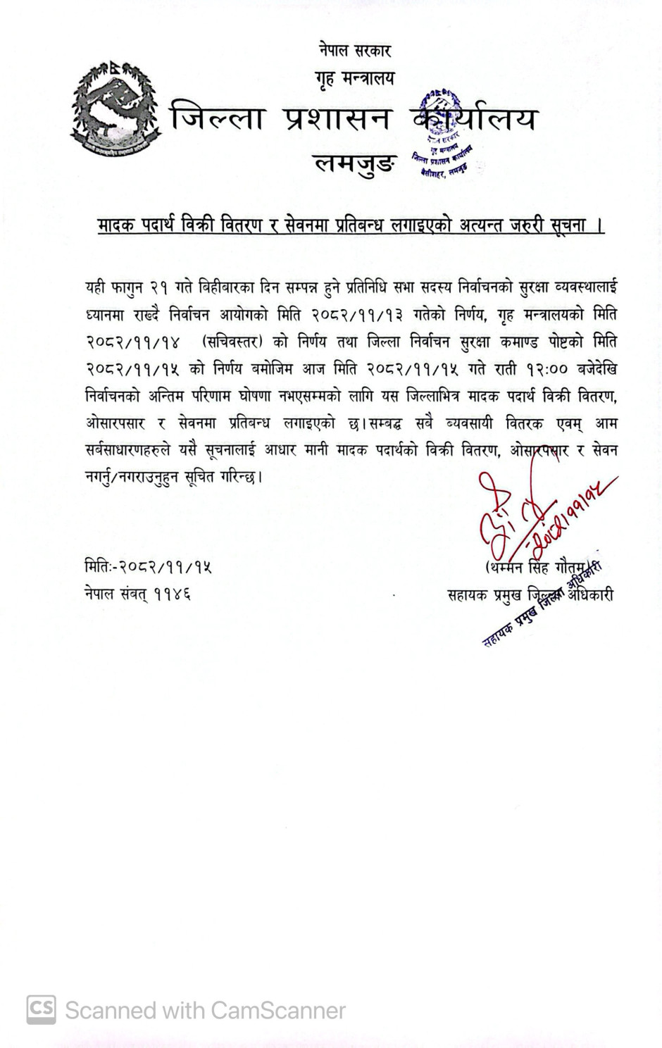 © सर्वाधिकार सुरक्षित जिल्ला प्रशासन कार्यालय, लमजुङ