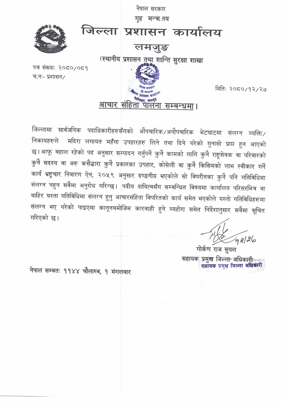 © सर्वाधिकार सुरक्षित जिल्ला प्रशासन कार्यालय, लमजुङ .