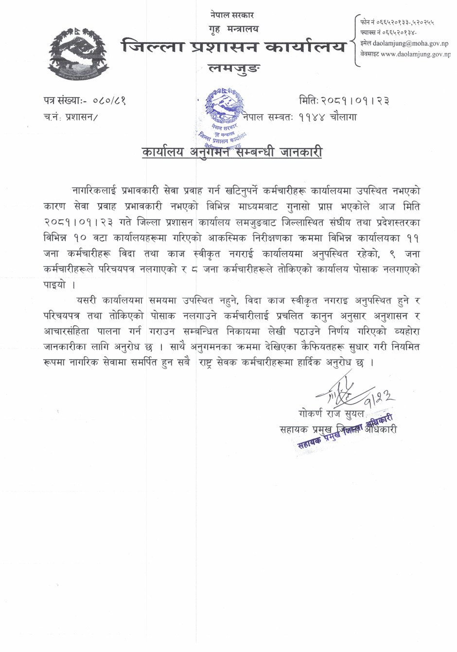 कार्यालय अनुगमन सम्बन्धी सूचना