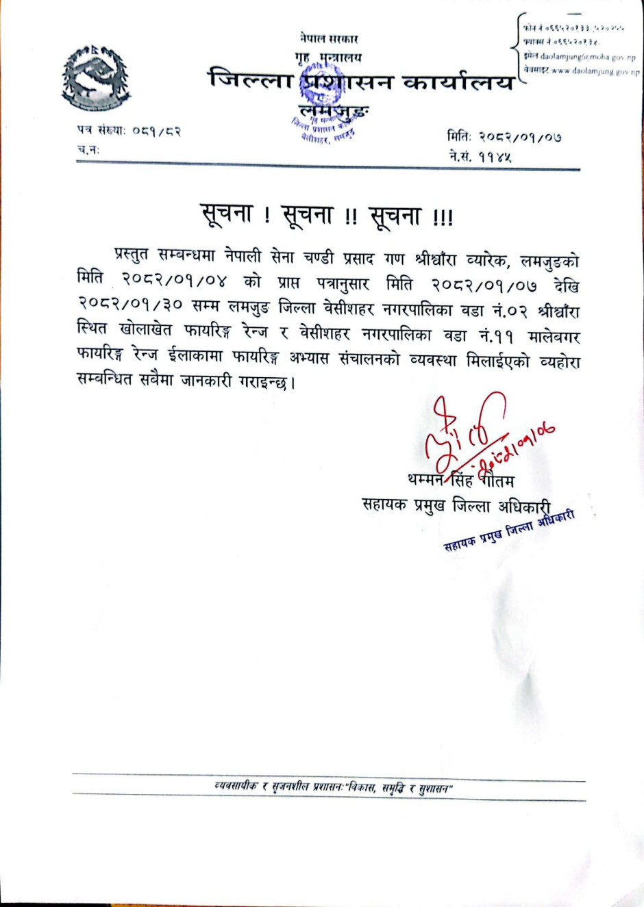 © सर्वाधिकार सुरक्षित जिल्ला प्रशासन कार्यालय, लमजुङ