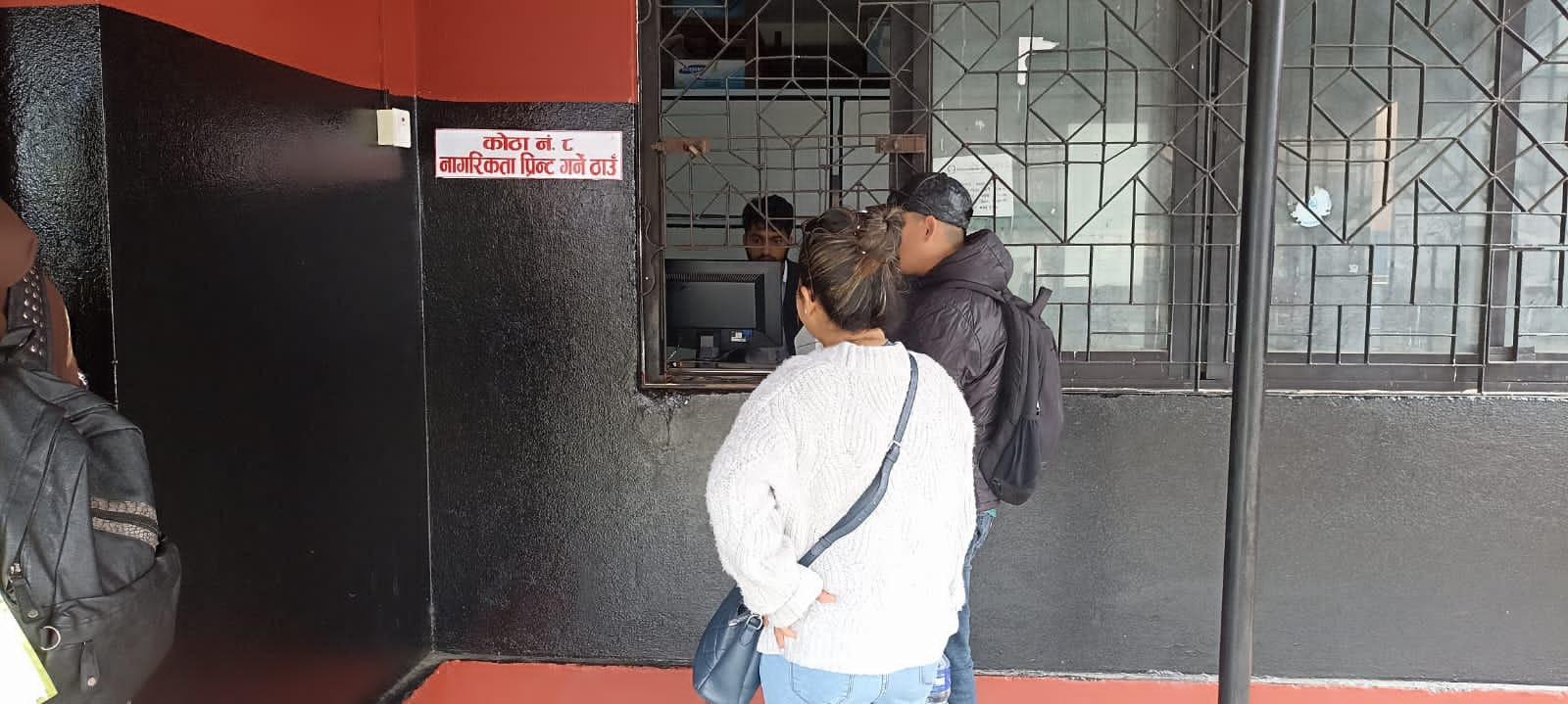 सेवाग्राहीले नागरिकता शाखाबाट सेवा लिदै।