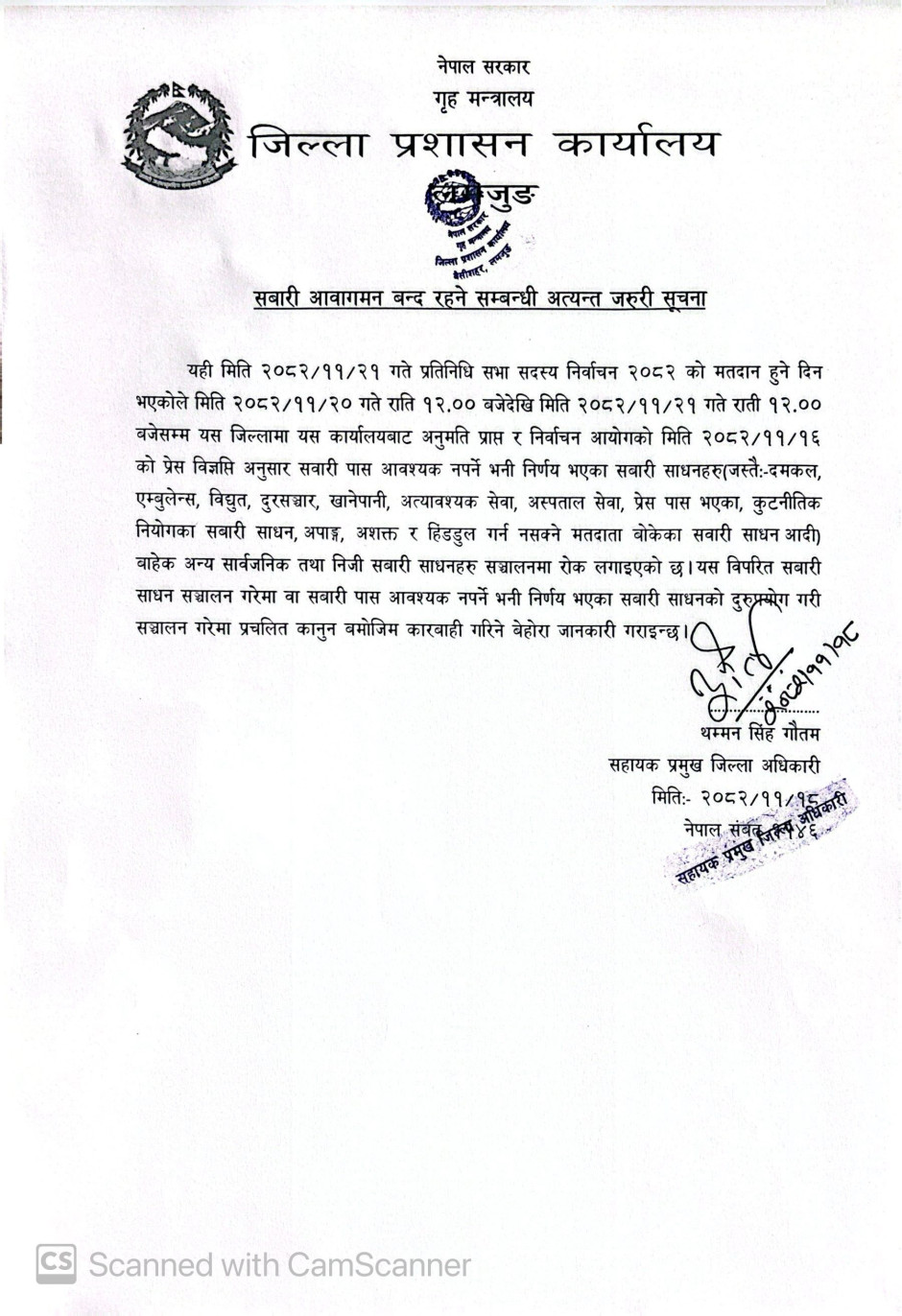 राहदानी सेवा अवरुद्ध भएको सूचना