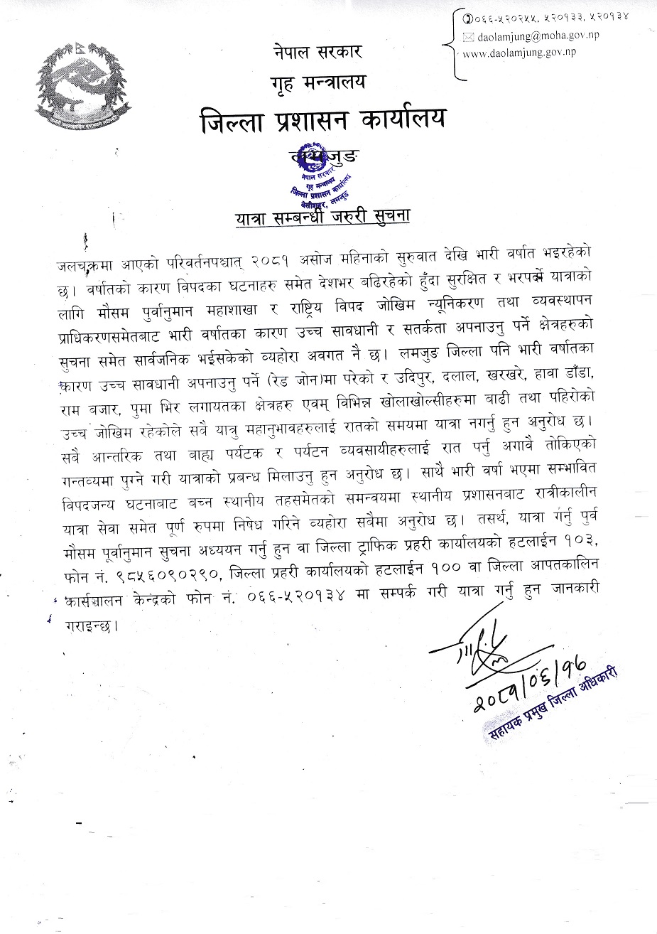 © सर्वाधिकार सुरक्षित जिल्ला प्रशासन कार्यालय, लमजुङ