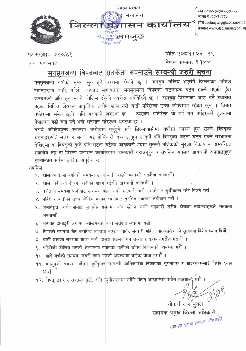 © सर्वाधिकार सुरक्षित जिल्ला प्रशासन कार्यालय, लमजुङ